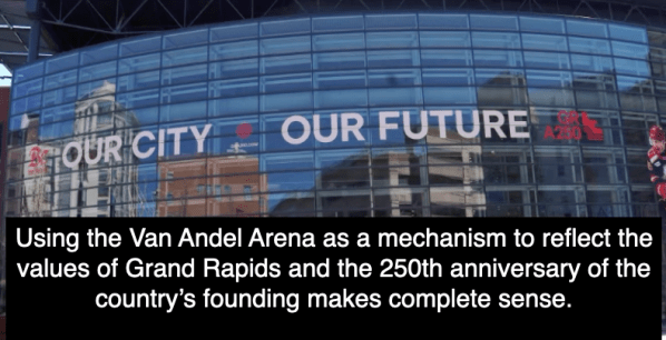 The Van Andel Arena is a perfect example of the values of the Grand Rapids and the 250th anniversary of the founding of this country