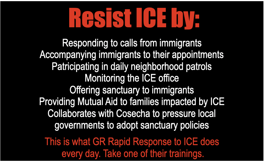 I want to end with another excerpt from the statement put out by GR Rapid Response to ICE recently, which says: