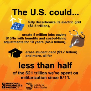 Maintaining a war machine that outspends the 12 or 13 next largest militaries in the world combined actually makes us less safe, as each new administration inherits the delusion that the United States’ overwhelmingly destructive military power can, and therefore should, be used to confront any perceived challenge to U.S. interests anywhere in the world—even when there is clearly no military solution and when many of the underlying problems were caused by past misapplications of U.S. military power in the first place.