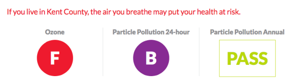 Interestingly enough, when Grand Rapids commercial media reported on this matter, the only focused on the fact that Grand Rapids was tied for 34th most polluted metro area. The WZZM 13 story made the city ranking its headline, while WOOD TV 8 focused on the F grading on Ozone.