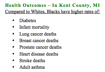 According to a 2017 report from the Grand Rapids African American Health Institute (GRAAHI), compared to White people, African Americans are at a higher risk of the following: