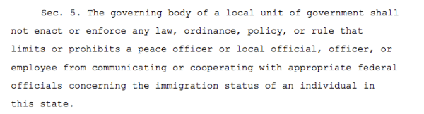 This legislation will make it law that will prohibit and city, county or township government in the state of Michigan from enacting a sanctuary policy, particularly a policy that would make it illegal for local law enforcement to NOT cooperate with federal officials as it relates to undocumented people.