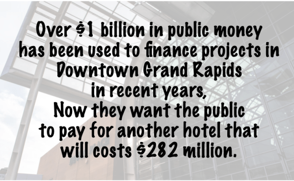 Last Friday, MLive posted a story with the headline, Push for publicly financed convention hotel back under consideration in Grand Rapids.