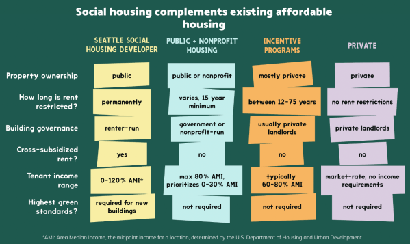 “Social housing is a public option for housing that is permanently affordable, protected from the private market, and publicly owned by the government or under democratic community control by non-profit and cooperative entities. Around the world, robust social housing programs have ended affordable housing shortages; expanded democratic accountability and equitable housing access; and raised populations out of poverty and into prosperity.” Social housing is built to house people well, rather than deliver a profit to developers & managers. States and municipalities in the US are initiating social housing programs anchored by a new generation of public-sector housing development agencies.